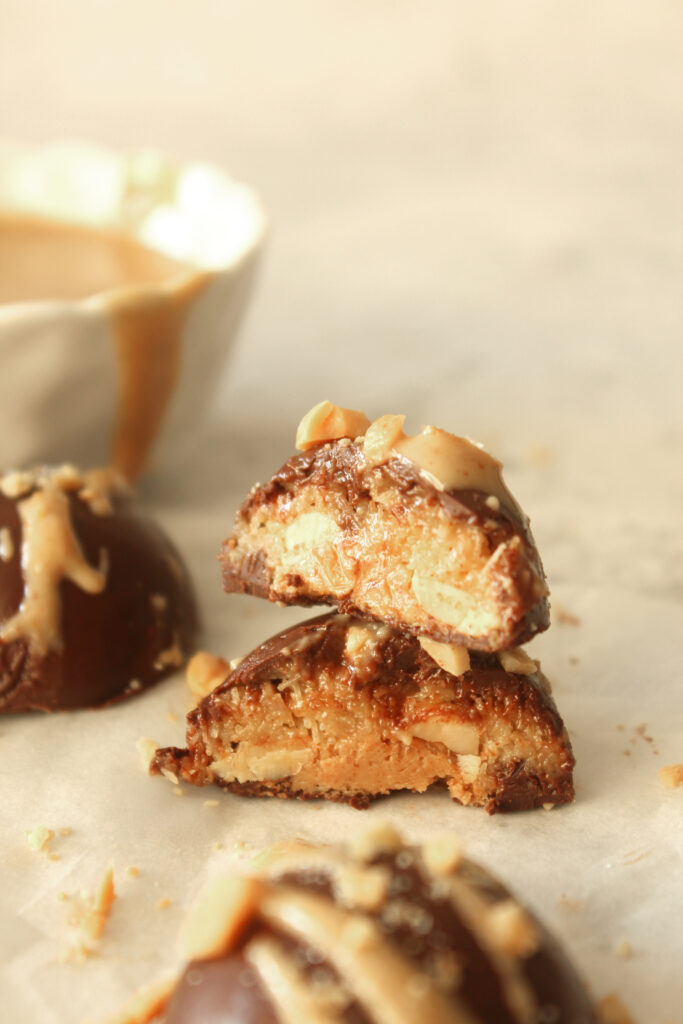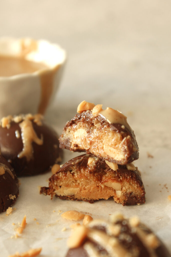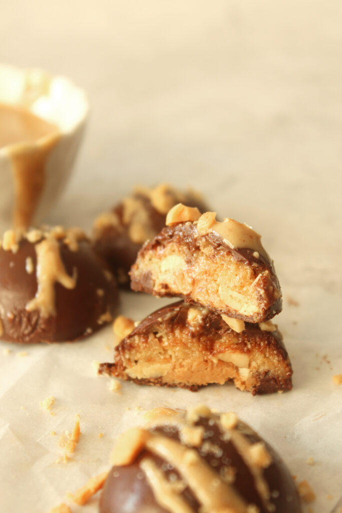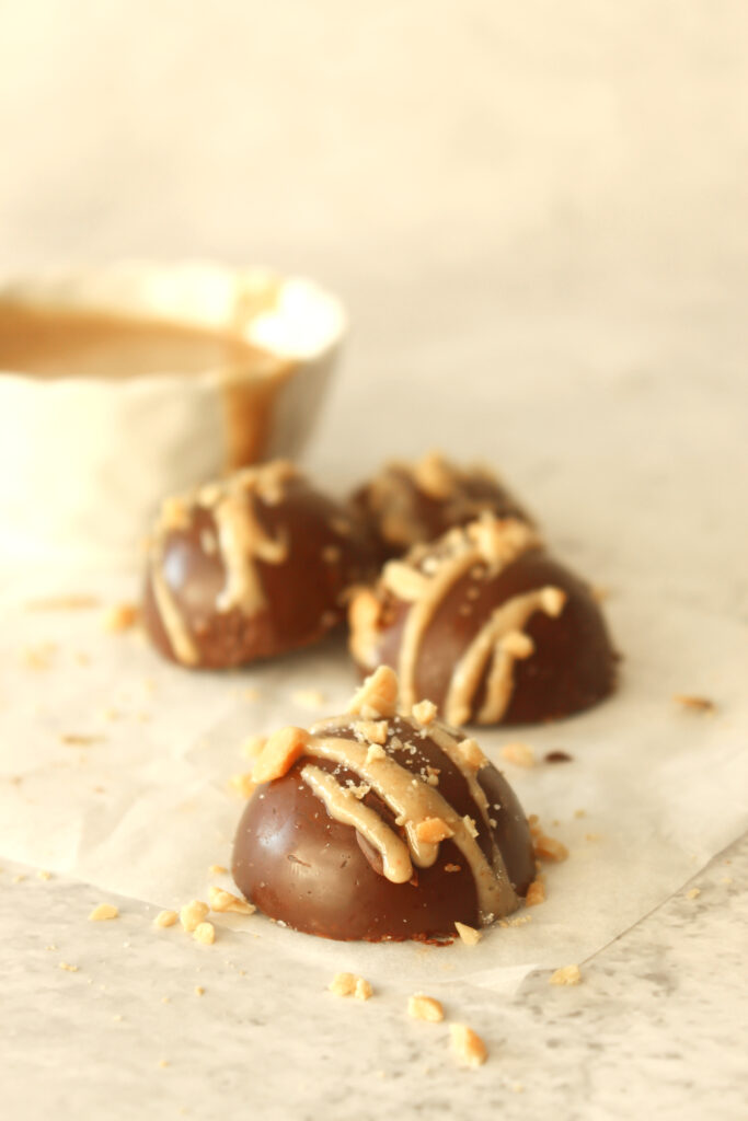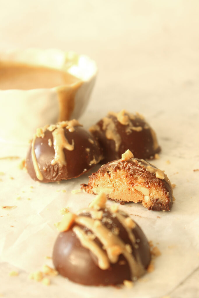 I used dark chocolate for the shell but you can opt for milk and can swap the smooth peanut butter for crunchy, the recipe is very forgiving.